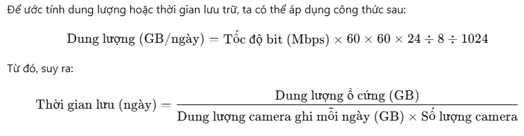 → Mỗi camera sẽ ghi khoảng 21,6 GB/ngày